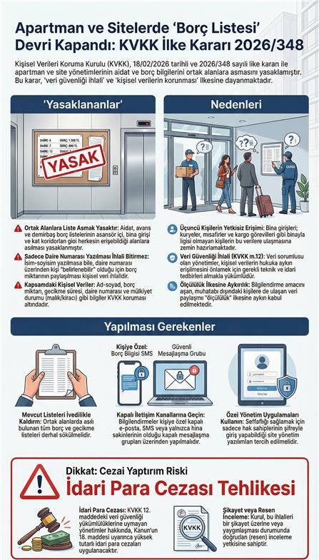Modern hukukta kişisel verilerin korunması, bireyin onurunu ve özel hayatını korumanın bir parçasıdır. Kurul’un 2026/348 Sayılı son ilke kararı, apartman ve site yönetimlerindeki geleneksel “ifşa ederek tahsil etme” yönteminin hukuki sınırlarını net bir şekilde çizmiştir.